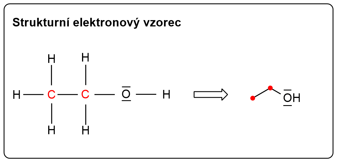 vazebnými pomlčkami: \(CH_3CH_2-OH\) nebo \(CH_3-CH_2-OH\)