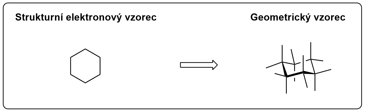 Geometrický vzorec – vyjadřuje prostorové uspořádání molekul. Roli na prostorovém uspořádání mají především nespárované elektronové páry a násobné vazby.
