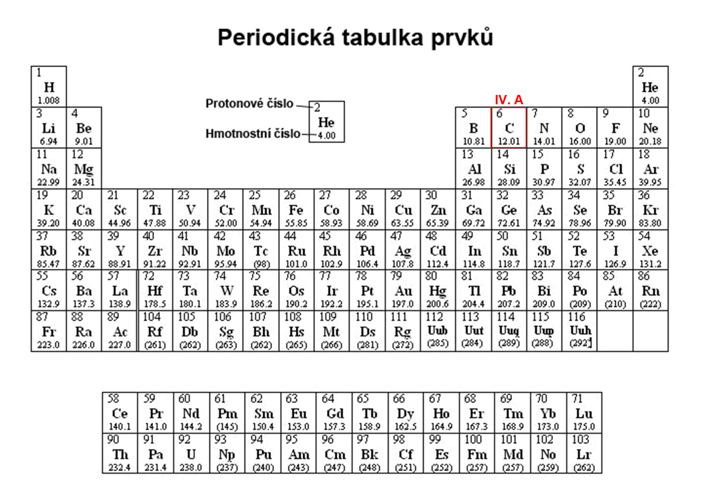 Periodická soustava prvků (PSP) – zařazení uhlíku.