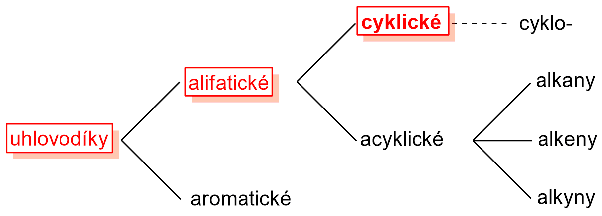 Obrázek 1: Zařazení cykloalkanů do systému organických sloučenin.