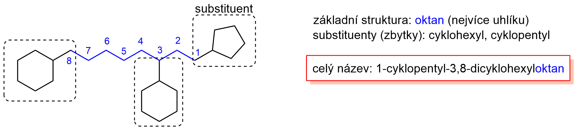 Máte uvedeno, že celý název je 1-cyklopentyl-3,8-dicyklohexyloktan