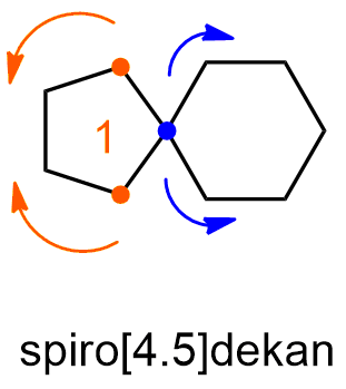 Obrázek 3: Ukázka směrů číslování na spirocyklické struktuře.