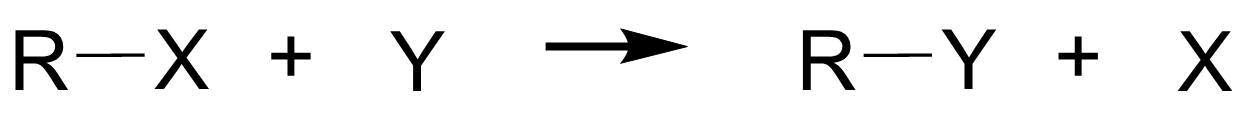 Často se využívá označení zahrnující zmíněný typ rce a charakteru reakční částice, zda se jedná o rci s nukleofilem (\(N^-\) ), elektrofilem (\(E^+\)), radikálem (\(R^.\))…. Např. substituce nukleofilní = \(S_N\). Dovolte malou vsuvku k vysvětlení následujících použitých termínů: