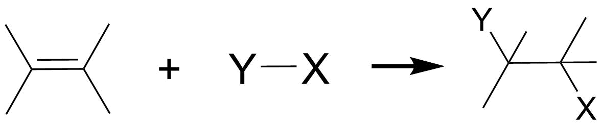 Než začneme krátce popisovat halogenaci, je nutné si prezentovat několik klíčových termínů. V organické chemii rozlišujeme několik typů reakcí: substituci (zkratka: S), adice (A), eliminace (E), přesmyk („P“). Schéma těchto reakcí můžete vidět zde: