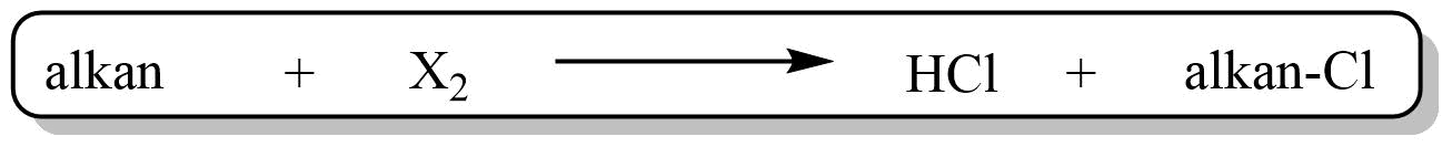 Radikálová halogenace je reakce alkanu a halogenu. Obecně lze tuto reakci zapsat následujícím způsobem: