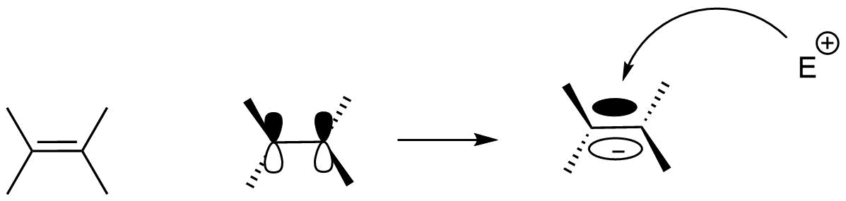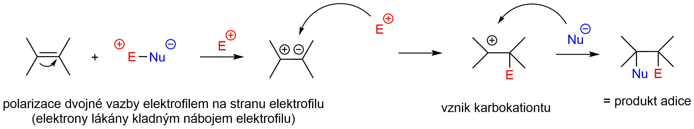 Obr. 1: Schéma elektrofilní adice na alkenu