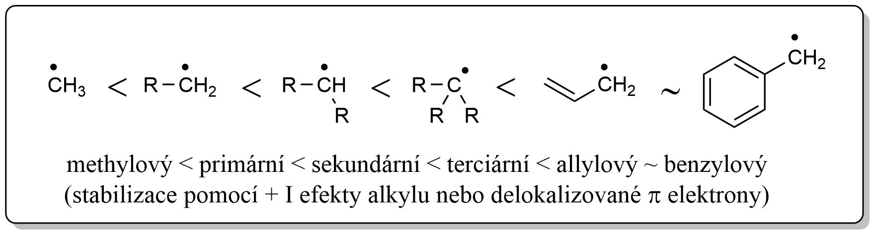 Obr. 3: Vzrůstající stabilita radikálů.