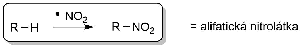 Nitrace je reakce v organické chemii, kdy se do struktury organické sloučeniny vnáší nitro- skupina \(-NO_2\). Opět se jedná o rci, jenž zahrnujeme do radikálových substitucí