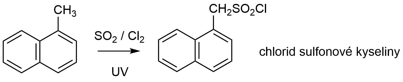 Dalším příklad lze opět demonstrovat, že sulfochlorace je ovlivněna stabilizací radikálu! Jelikož jsou tyto reakce prováděny za „drastických“ podmínek, vznikají i vedlejší produkty syntézy.