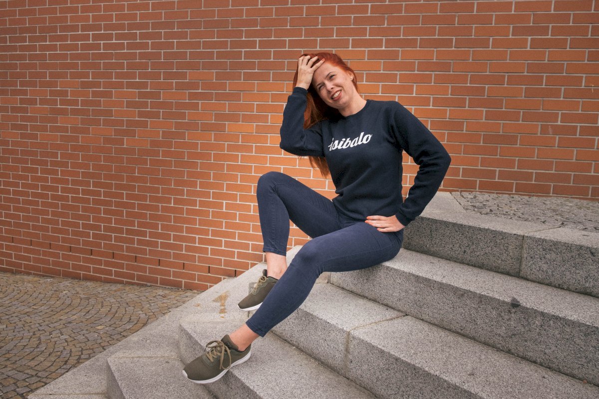 Dámská mikina tmavě modrá bez kapuce.